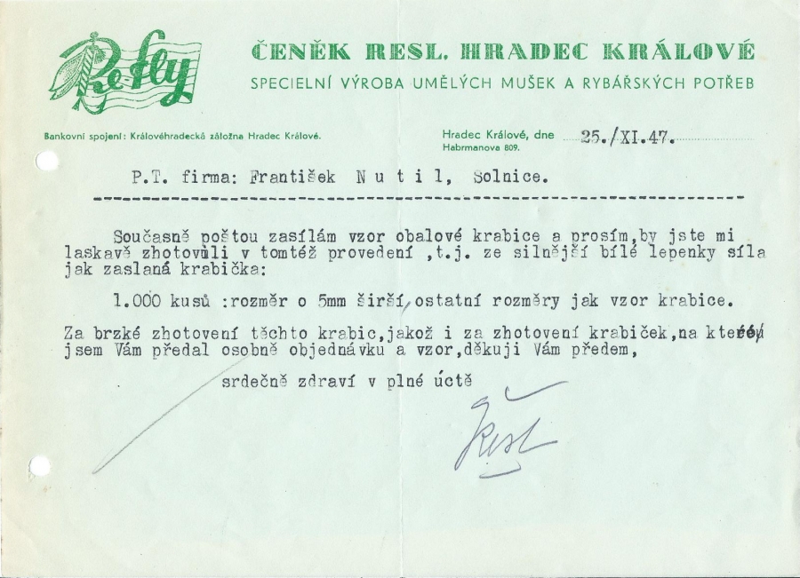 ČENĚK RESL, Re-fly (ČSR 1946 - 1960):Sběratelské stránky rybářských výrobků královéhradecké provenience 1946 - 2006